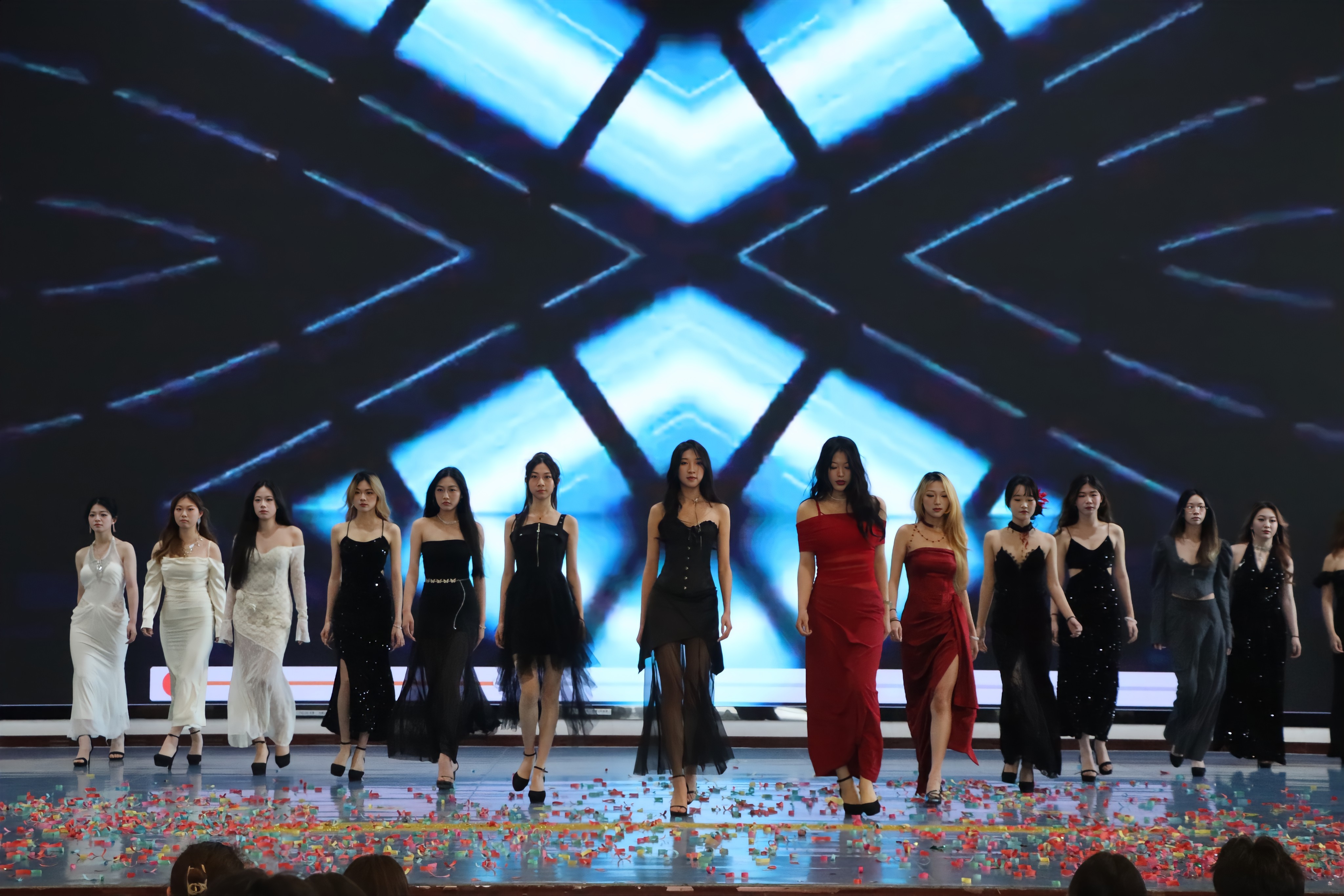 华灯似繁星闪烁,音乐时而低语,时而激昂。模特们身姿笔挺,步伐稳健,一举一动都散发迷人魅力,牢牢吸引观众目光,引领大家步入如梦似幻的时尚秘境。