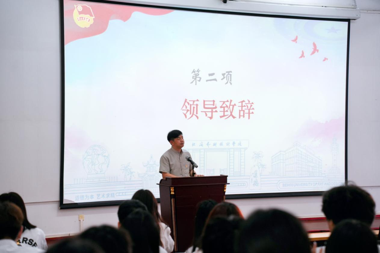 校党委副书记彭仁为开班仪式致辞,他认为共青团是点燃理想的火炬,是锻造青春的熔炉。他用三把"金钥匙"与大家共勉:以学铸魂,做真理的"追光者",以践明志,做青春的"实干家",以创启航,做时代的"新青年"。最后,他对青年予以寄托:新时代共青团员应眼里有光、脚下有路、肩上有责,把培训所得转化为服务社会的"青春方案"。